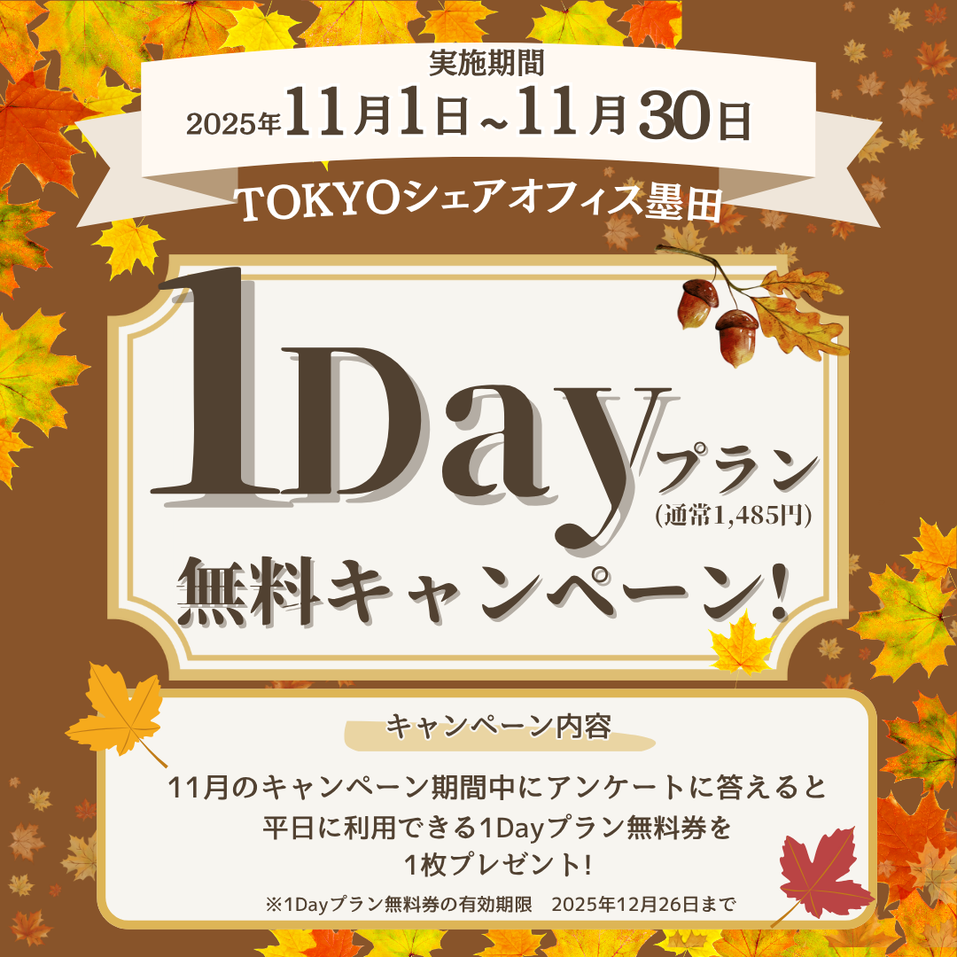こんにちは!TOKYOシェアオフィス墨田運営スタッフの藤野です。 10月も残り数日となりました!気温もすっかり涼しくなって秋の訪れを感じます。数週間前までは半袖を着ていたというのに、今では薄着で過ごしているとぶるりと身震...