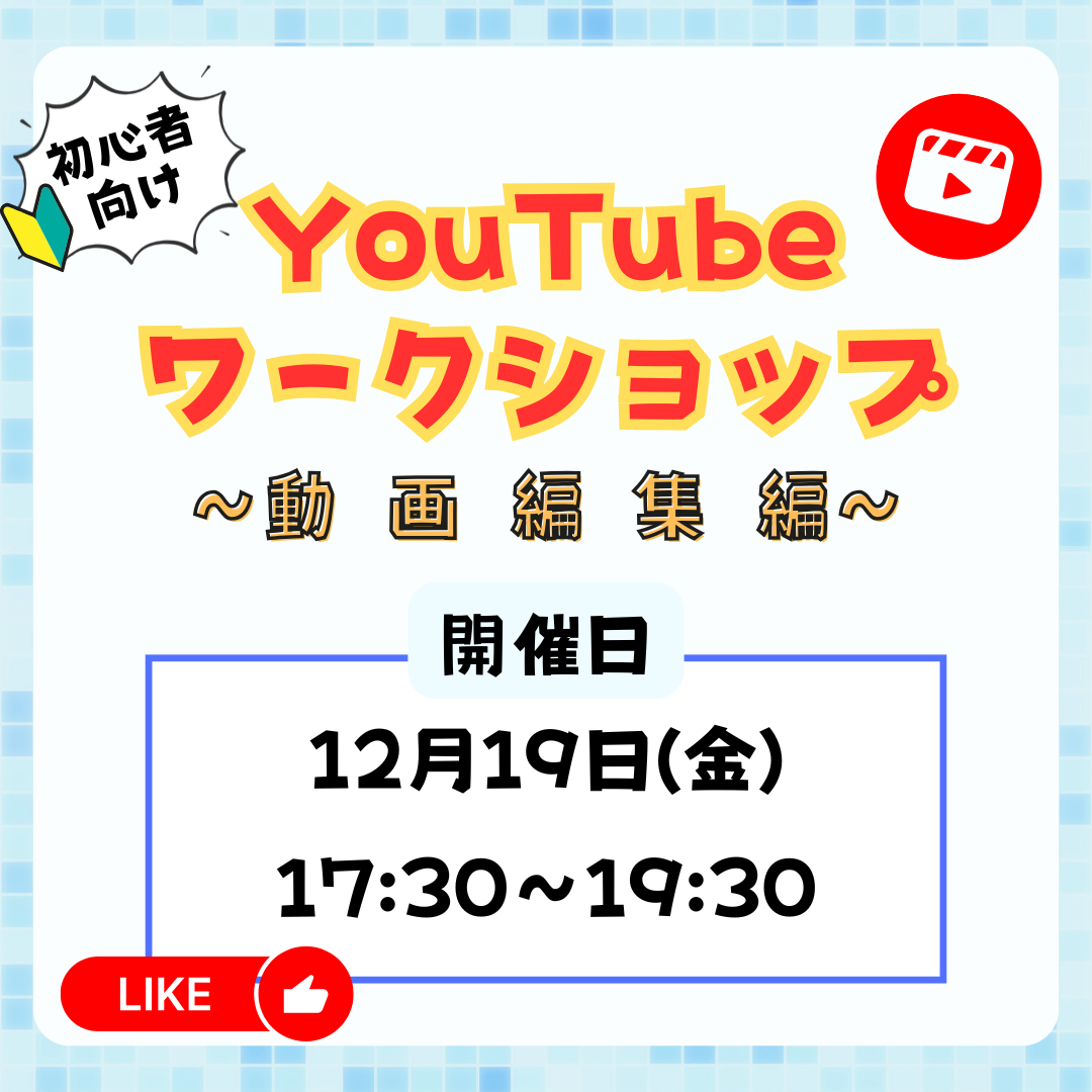 12月19日「初心者向けYouTubeワークショップ~動画編集編~」新着!!