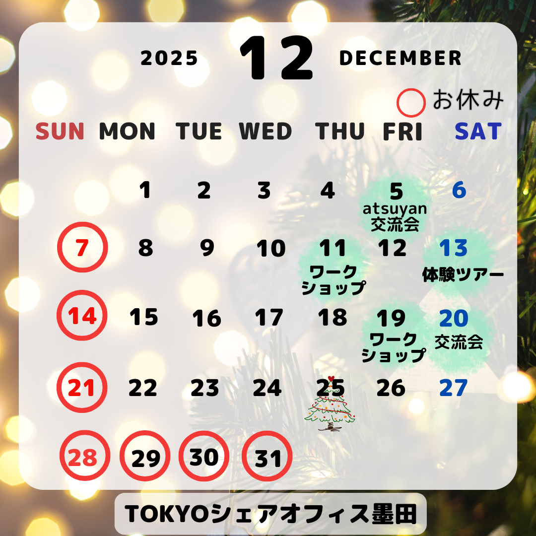 こんにちは!TOKYOシェアオフィス墨田運営スタッフの藤野です。 11月が終わり今年も残すところあと1ヵ月となりました!もう12月なの⁉と現実を受け止め切れていない自分がいます💦来月以降に使用する書類などを眺めると、そこ...