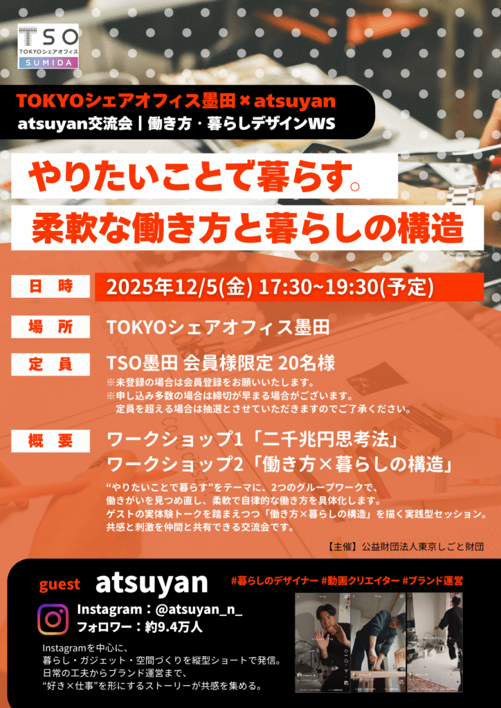なんとこの度、atsuyanさんによるワークショップ形式の交流会開催が決定しました👏👏