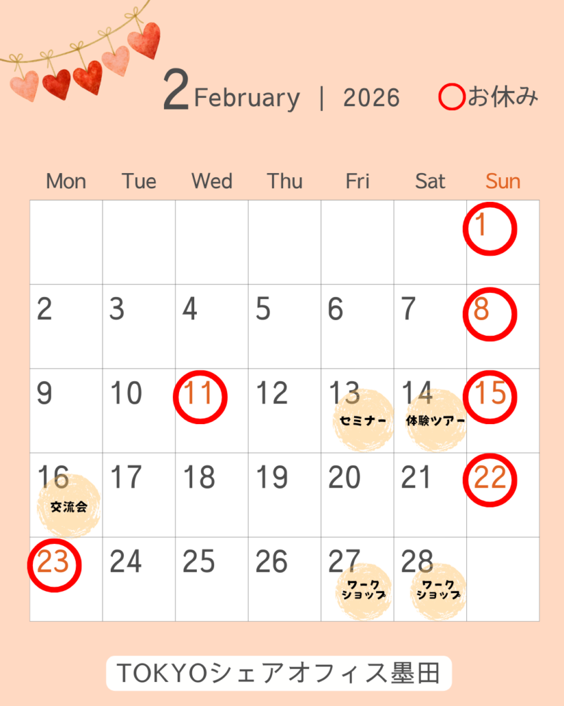 2月の営業日はこちら↓↓↓