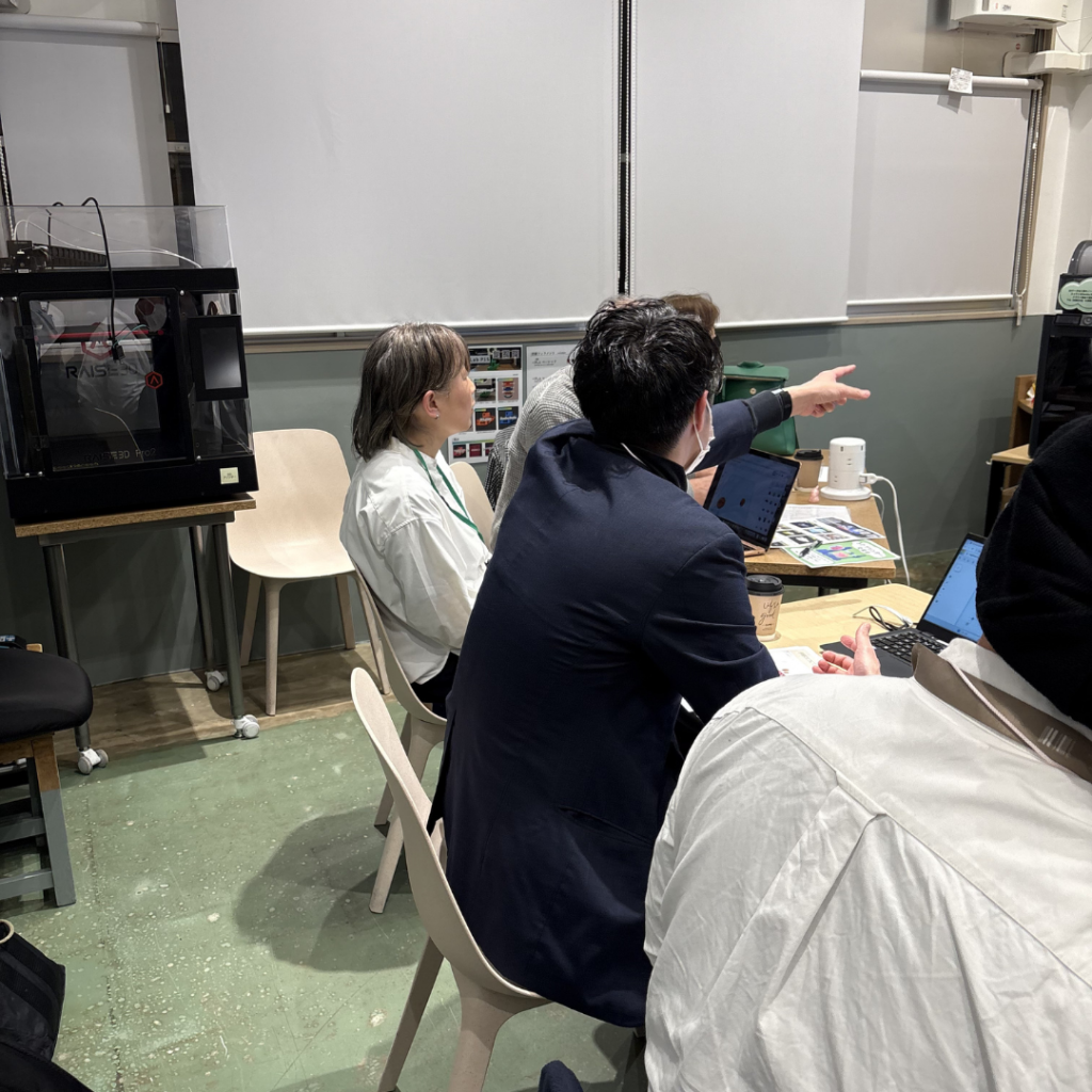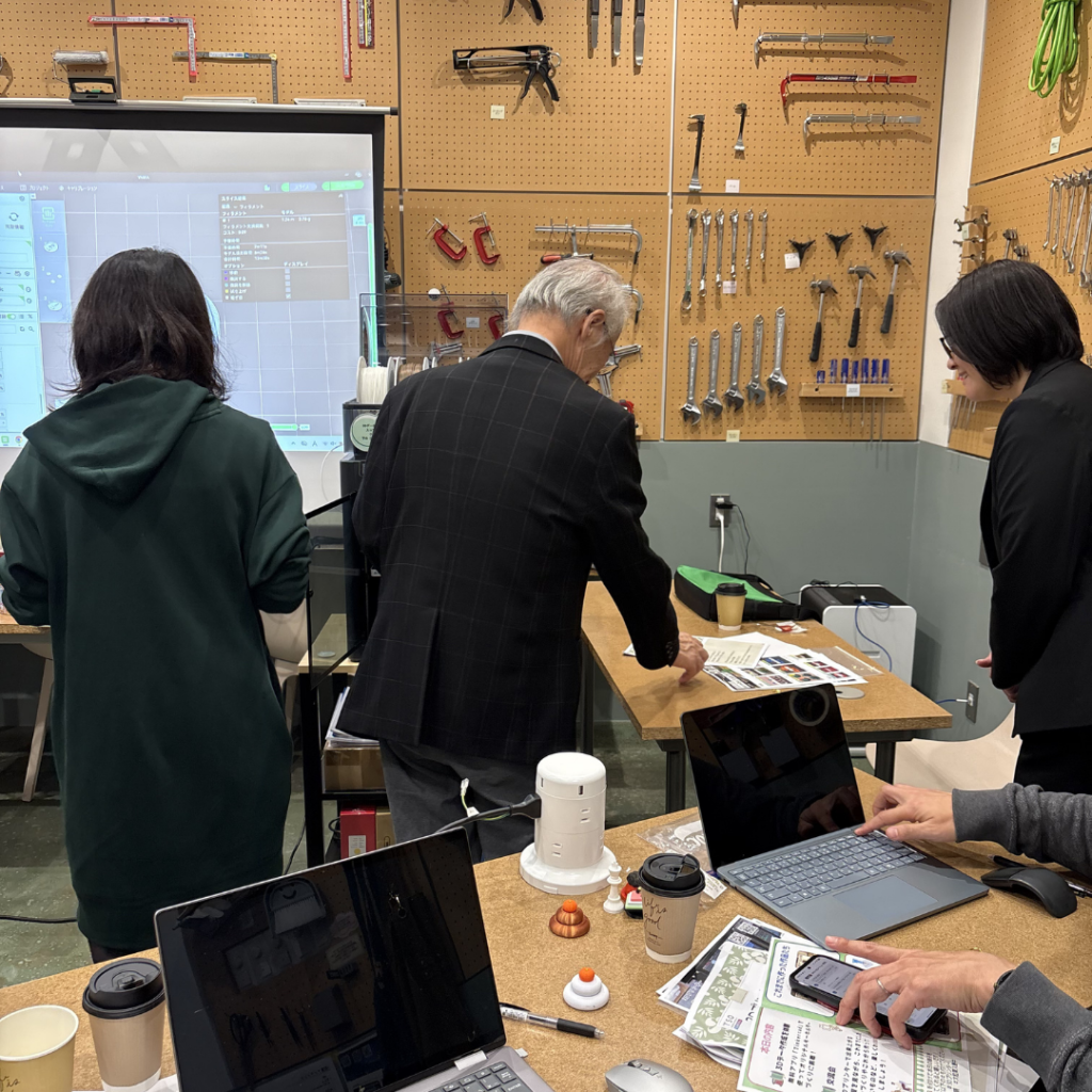 参加者の方にはご自宅に3Dプリンターがある方がお二人いらっしゃったので、普段どのように作っているのかや作品例を見せていただき、これから作ってみたいものがある方がものづくりのイメージを広げられるお話が聞けました!