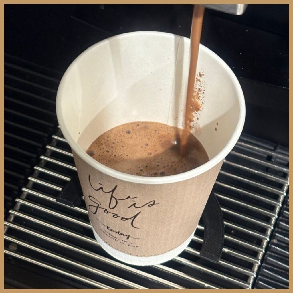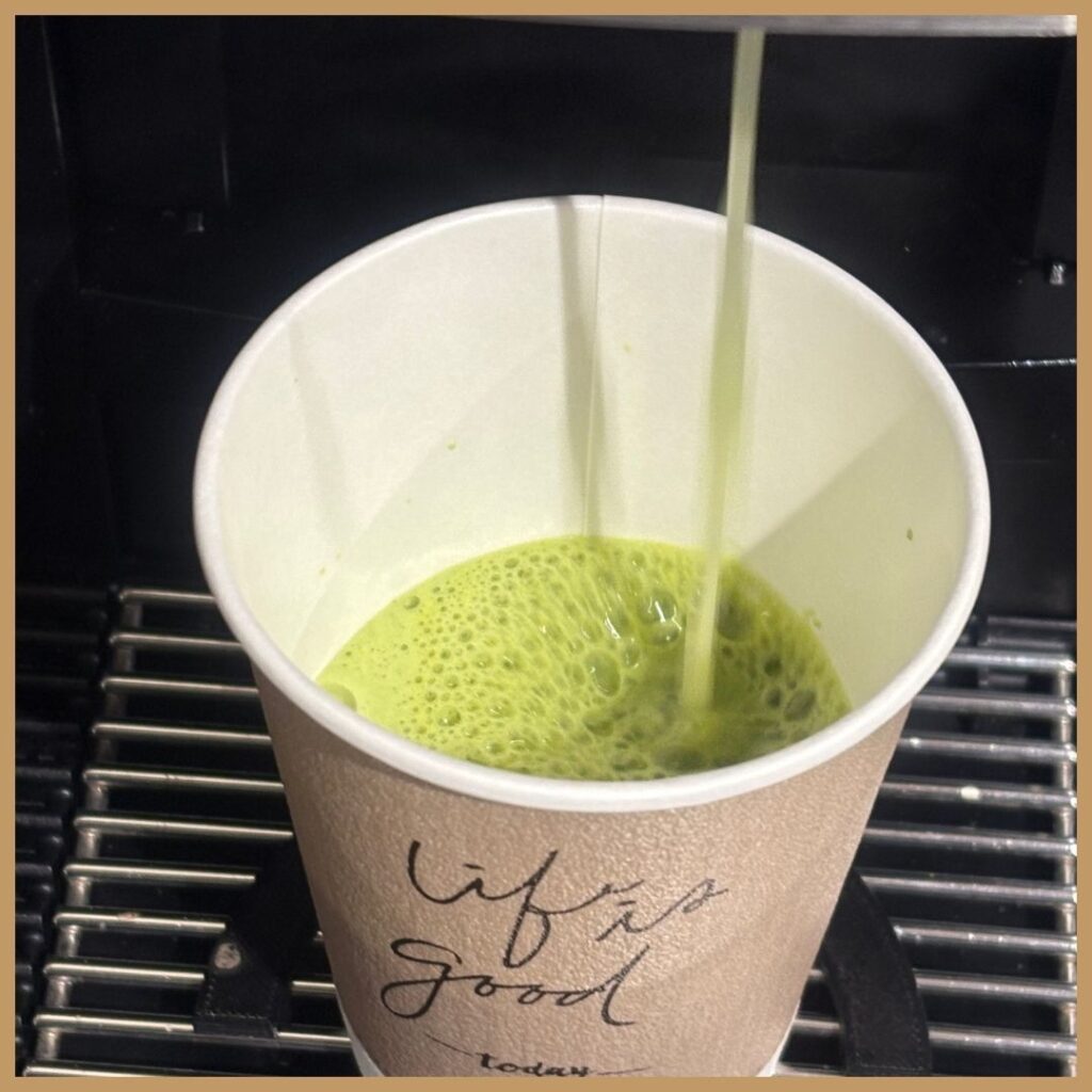 また、この裏メニューですが『アイスココア・アイス抹茶ラテ』と『ホットミルク』の2つのドリンクを混ぜるため、紙コップいっぱいに注がれます。ギリギリこぼれない量ではありますが、お持ちの方はタンブラーやマイマグカップに入れていただいた方が飲みやすいかもしれません💦