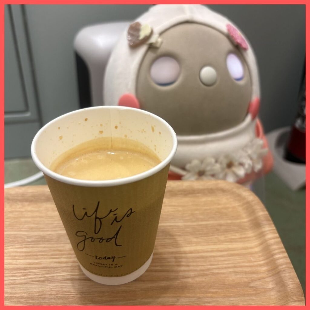 次はパイナップルを探してみましょう!味に意識を集中させるために鼻をつまんでひとくち…すると、ほのかにフルーツのような酸味を感じました。もしや、これがパイナップルの様な風味なのでは!ほんのりとしたこの風味が苦みと合わさって良き調和を生み出している気がします!苦すぎず、酸っぱすぎずなんともバランスの良いお味。説明にもあるよう、たしかにこれはカフェラテにしても美味しそうです🥰